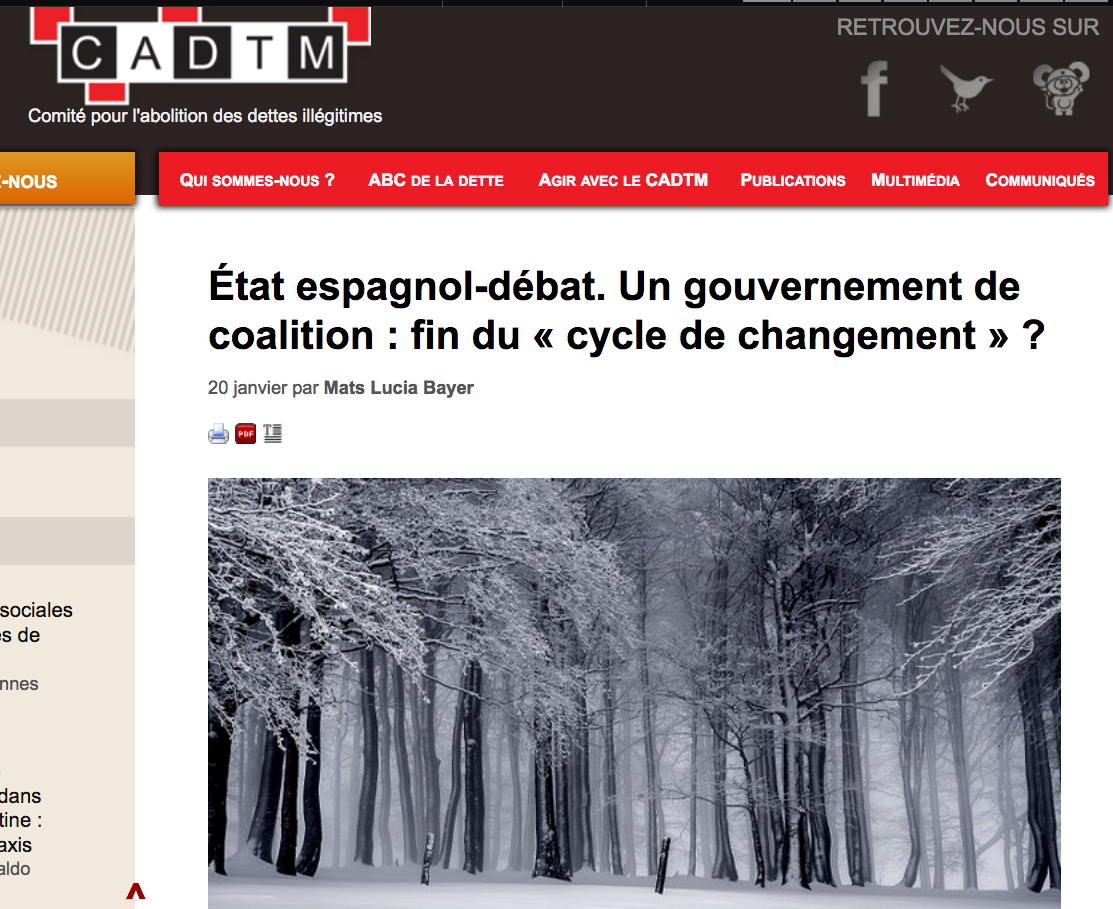 Encore ceci : il est dommage que cet article n’intègre pas un minimum l’équation de la crise “catalane”qui déborde largement le cadre territorial et interfère au plus près, voire surdétermine avec quel pouvoir de percussion, les autres équations, sociales, économiques et évidemment politiques ! (Lire :Espagne, Catalogne, entre labyrinthe et impasse (1))