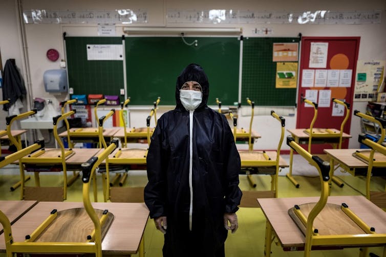 Dans le cadre du déconfinement, les écoles ont mis en place des protocoles sanitaires incluant notamment le nettoyage et la désinfection des locaux et matériels. Jeff Pachoud/AFP