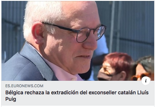 La Belgique rejette la demande d’extradition [par l’Espagne] de l’ancien conseiller catalan (ministre du Govern catalan) Lluís Puig.