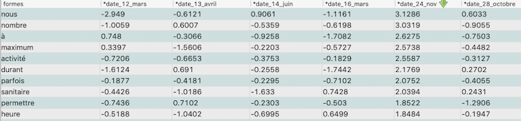 Dans un récent article, j’avais montré que le positionnement actuel du président était complètement différent de celui qu’il avait eu lors du premier confinement : moins empathique et plus distancié, le président n’assumait pas linguistiquementles nouvelles consignes, par le recours à des chiffres, des comparaisons, là où il s’impliquait (inter)subjectivement dans les discours du premier confinement, avec des tendances en « vous/les soignants », « je/nous » et « le retour/l’avenir ».