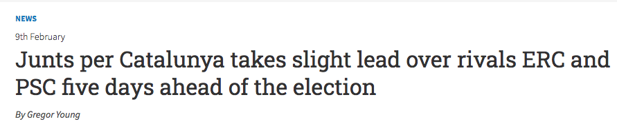 Les sondages pour l’élection catalane du 14 février sont désormais interdits dans l’Etat espagnol. Mais l’écossais The National vient de sortir le sien. C’est en anglais. Voilà ce qu’il donne qui corrige, à l’avantage de Junts et de la CUP et au détriment d’ERC et du PSC, le dernier sondage sorti outre-Pyrénées.